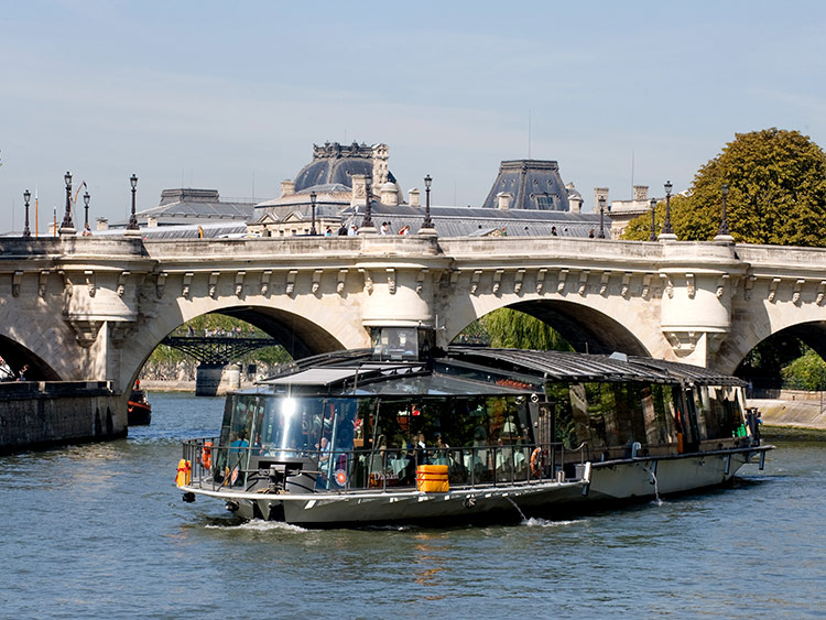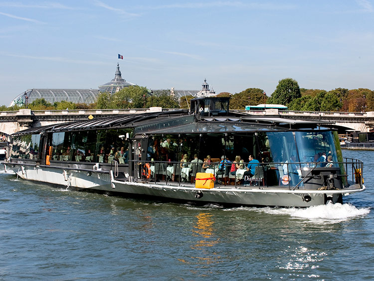 Généralement de grande taille, ces bateaux d'architecture navale moderne, parfois futuriste, le plus souvent de grande taille (avec des capacités pouvant dépasser les 500 personnes en navigation) permettent de découvrir la Seine et les monuments de Paris (Tour Eiffel, Notre-Dame, Louvre, la Conciergerie, Hôtel de Ville...) et les ponts dans des conditions inhabituelles et exceptionnelles.