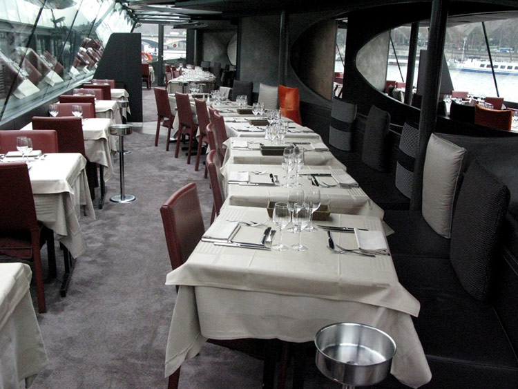 Les qualités fonctionnelles de ces vastes bateaux sont dignes des meilleures salles de réception à terre : hauteur sous plafond, espaces de dégagement entre les tables ou couloir de circulation des personnes, tout y est conçu pour assurer un grand confort.