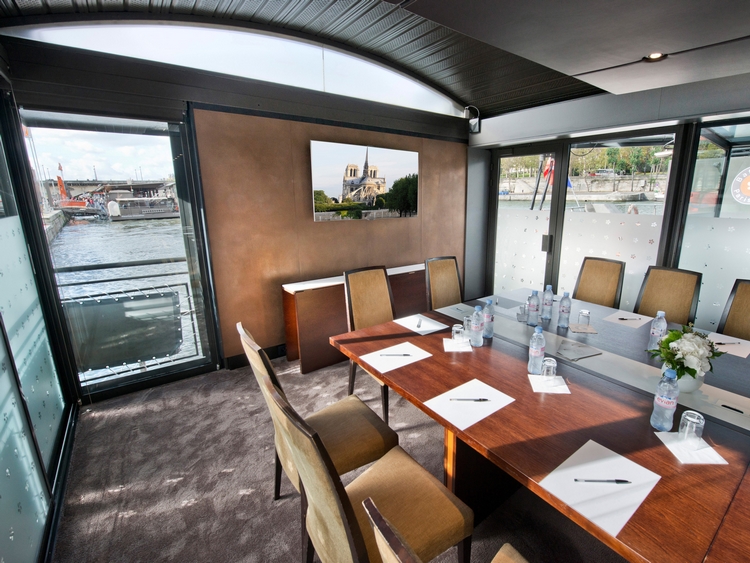 Le cadre original de ces salons permet aussi de recevoir vos invités sans contrainte horaire tout en profitant de la vue sur l’activité fluviale et des monuments de Paris dans une ambiance nautique…